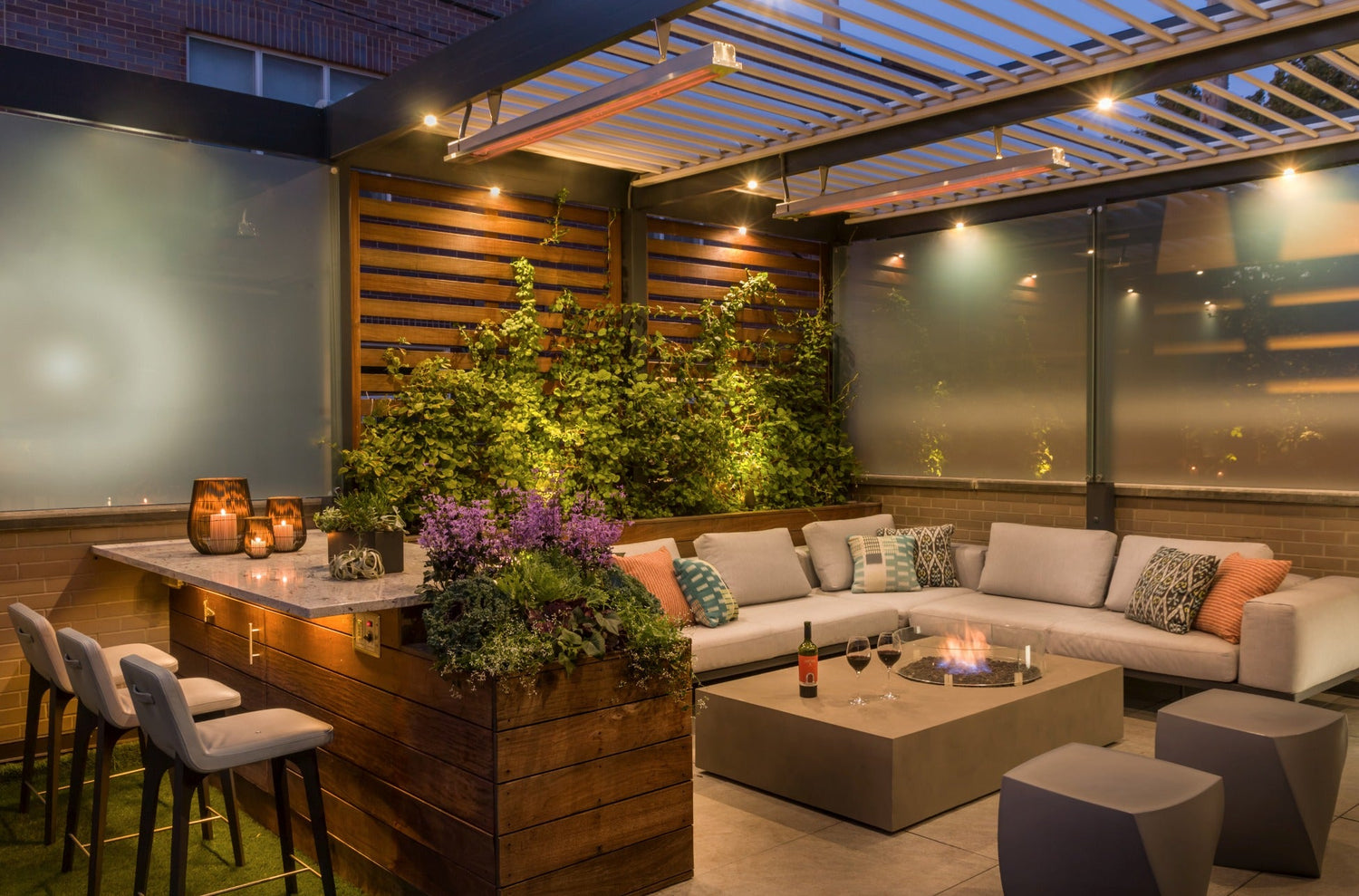 Recessed-mounted heaters provide a paradisiac feeling