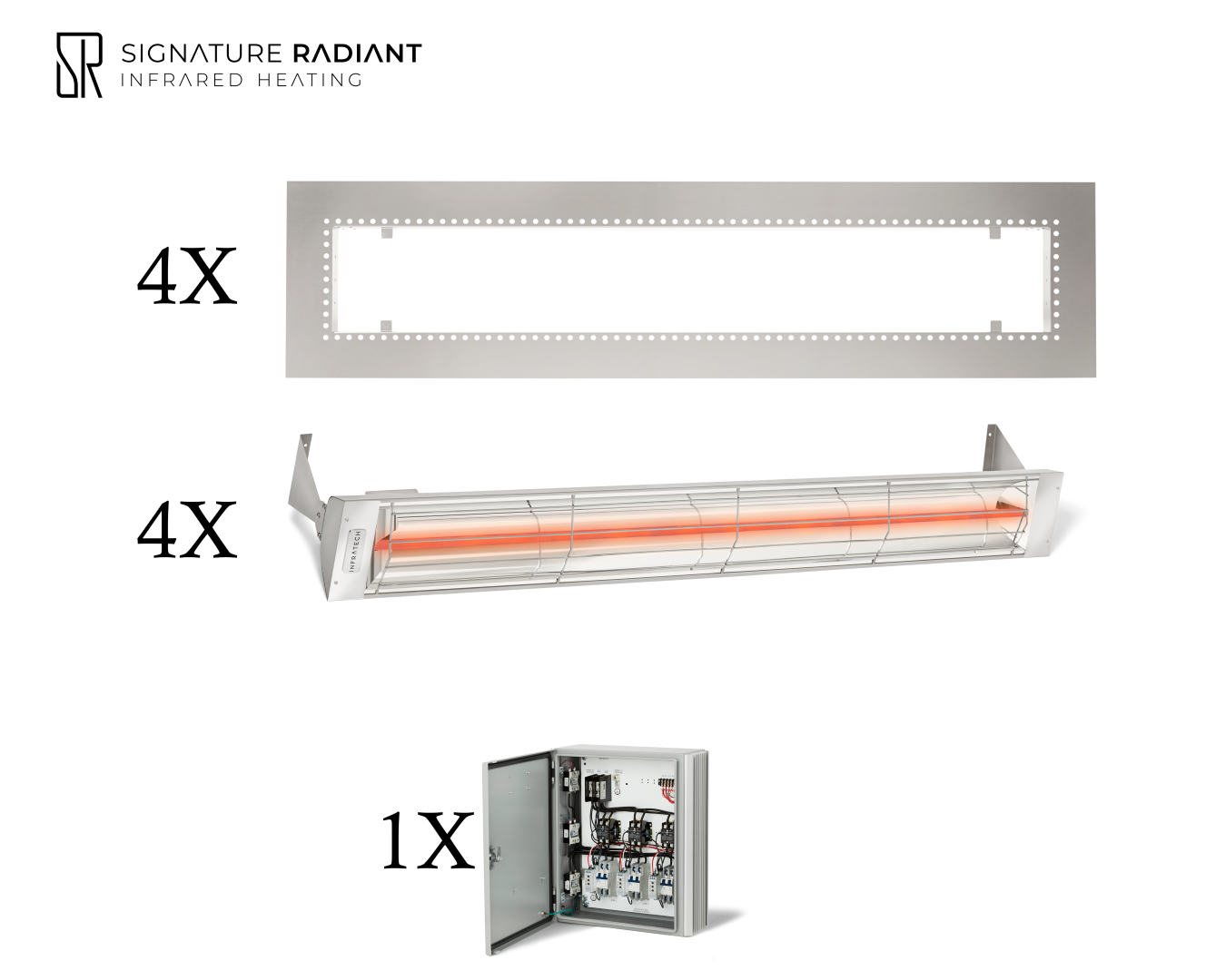 Package: 4 x 4kW infrared heater W Series Recessed - with Panel
