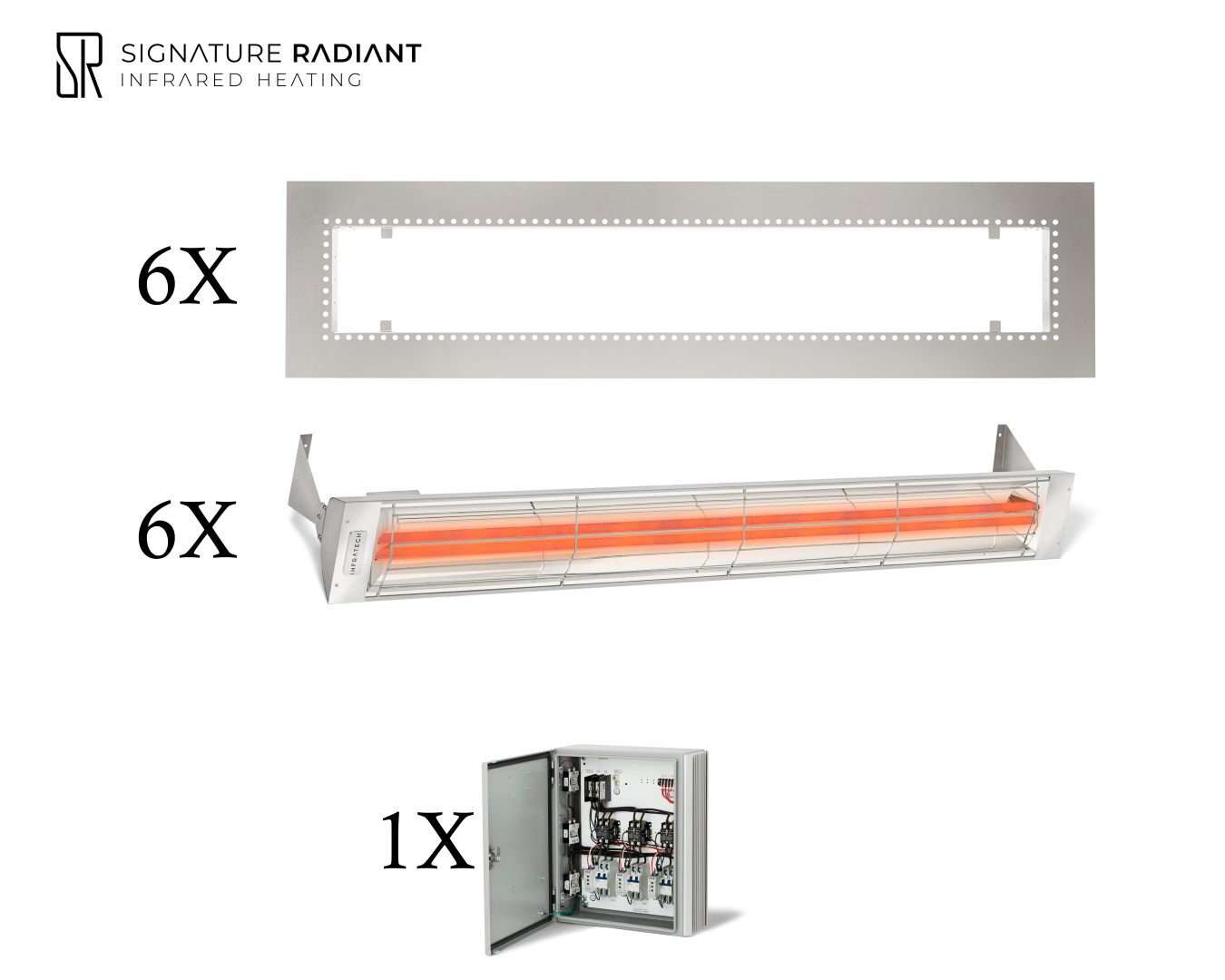 Package: 6 x 6kW infrared heater WD Series Recessed - with Panel